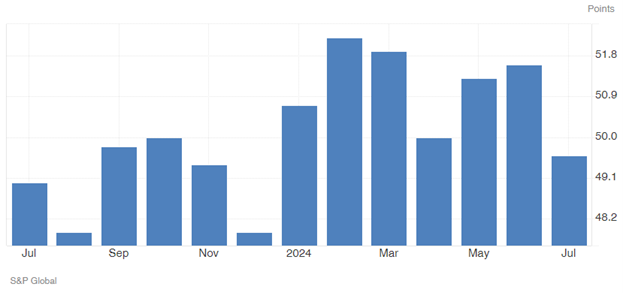 Another troubling report pointing to deterioration in U.S. economic activity came from the manufacturing sector as the ISM Manufacturing Production index missed consensus expectations once again in July, falling to a seven-month low of 45.9. Given a recent uptick in order cancellations over just the past four months, it is likely we will see continued manufacturing weakness in the second half of 2024.